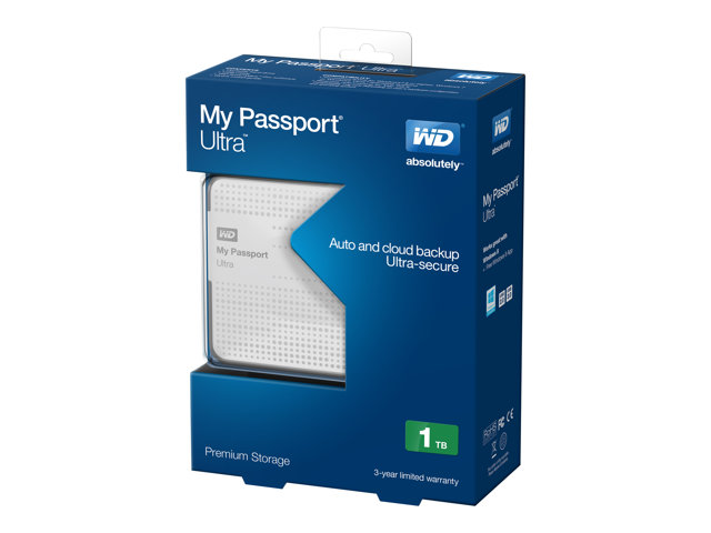 WD My Passport Ultra WDBZFP0010BWT - Hårddisk - krypterat - 1 TB - extern (portabel) - USB 3.0 - vit