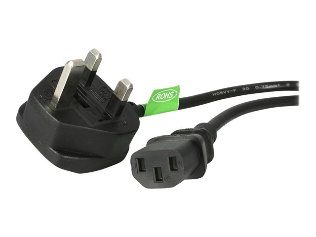 StarTech.com 3ft (1m) UK Computer Power Cable, BS 1363 to C13 Power Cord, 18AWG, 10A 250V, Black Replacement AC Power Cord, Monitor Power Cable, BS 1363 to IEC 60320 C13 Kettle Lead - PC Power Supply Cable (BS13U-1M-POWER-LEAD) - Strömkabel - BS 1363 (P) till power IEC 60320 C13 - AC 250 V - 10 A - 1 m - formpressad - svart - Storbritannien