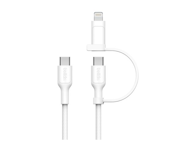 Belkin BoostCharge Pro 2-in-1 - USB-kabel - USB-C (hane) till Lightning, USB-C (hane) - USB 2.0 - 1.5 m - up to 480 Mbps, Snabbladdning upp till 60 W - vit