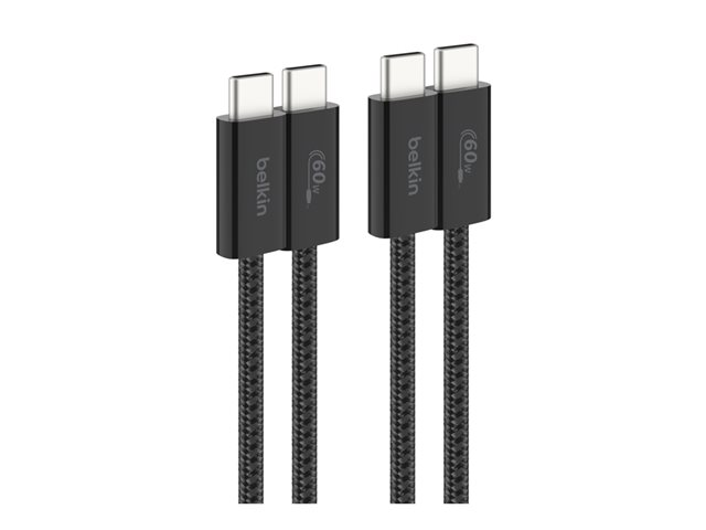 Belkin BoostCharge - USB-kabel - USB-C (hane) till USB-C (hane) - 1.5 m - USB Power Delivery (60W), flätad kabel - svart (paket om 2)