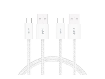 Belkin BoostCharge - USB-kabel - USB (hane) till USB-C (hane) - 1.5 m - flätad kabel, USB Fast Charge (15W) - vit (paket om 2)