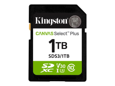Kingston Canvas Select Plus - Flash-minneskort - 1 TB - Video Class V30 / UHS-I U3 / Class10 - SDXC UHS-I SDS3/1TB