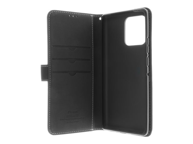 Insmat - Vikbart fodral för mobiltelefon - genuint läder, polykarbonat, bomullssömmar, kartong+papper, polyuretan (PU) - svart - för Motorola Edge 40 Pro
