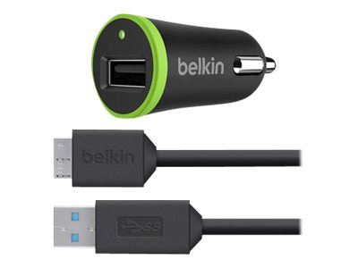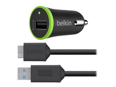 Belkin Car Charger - Strömadapter för bil - 10 Watt - 2.1 A (USB) - på kabel: Micro-USB - svart - för Samsung Galaxy Note 3, NotePRO (12.2 tum), S5, TabPRO (12.2 tum) F8M864BT03-BLK