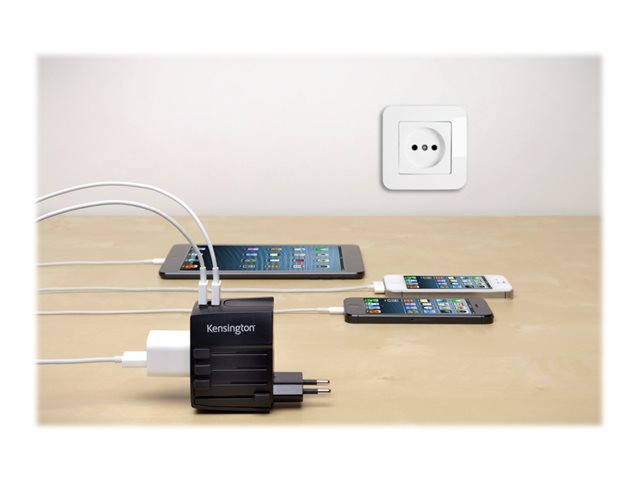 International Travel Adapter är den idealiska kompanjonen när du är på väg utomlands och behöver ladda batteriet på dina enheter och ger en professionell, samtidig laddning för upp till tre enheter i över 150 länder. Dubbla USB-portar gör det enkelt att ladda smarta telefoner och datorplattor, inklusive din iPhone , iPad , Galaxy S , Microsoft Surface , och andra favoritenheter. Med en 2-polig adapter kan du också driva allt från en bärbar dator till en 2-i-1-hybrid, t.ex. Surface Pro.