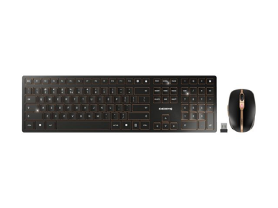 CHERRY DW 9100 SLIM - Sats med tangentbord och mus - trådlös - 2.4 GHz, Bluetooth 4.2 - QWERTY - USA med eurosymbol - tangentbrytare: CHERRY SX - svart/brons