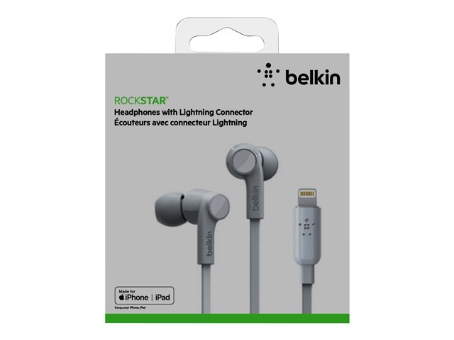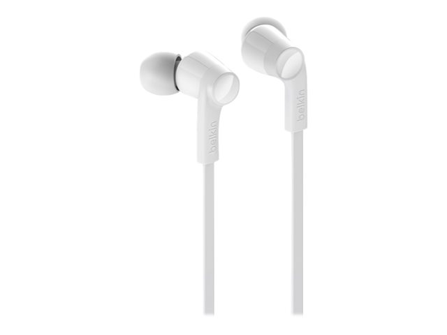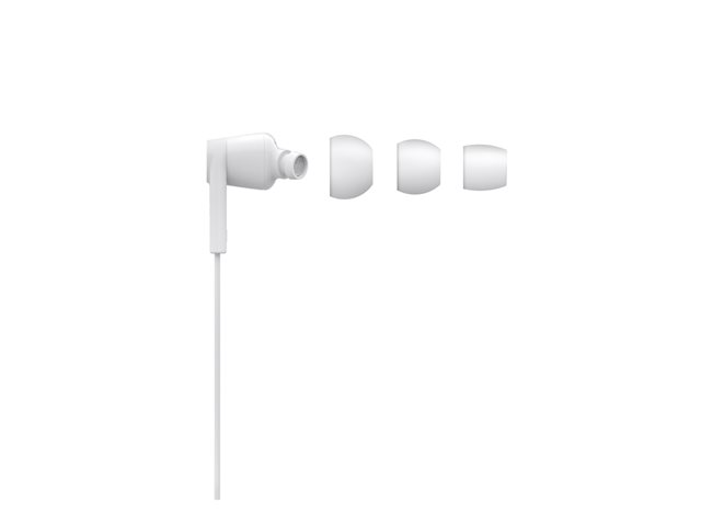 Belkin ROCKSTAR - Hörlurar med mikrofon - inuti örat - kabelansluten - Lightning - ljudisolerande - vit - för Apple 10.5-inch iPad Pro; iPad mini 4; iPhone 7, 7 Plus, 8, 8 Plus, X, XR, XS, XS Max G3H0001BTWHT