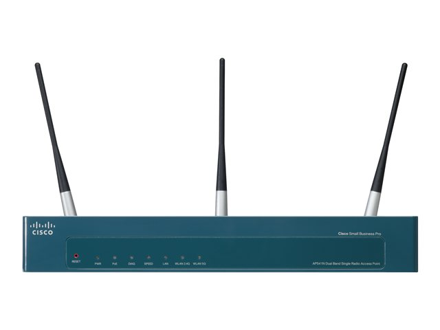 The Cisco AP 541N is a 802.11n dual-band clustering access point built for small businesses. The clustering capability makes it easy to set up, configure, and manage a growing wireless network. You can deploy multiple access points and push a single configuration to all the devices within the cluster, managing your wireless network as a single system without worrying about interference between access points, and without having to configure each access point as a separate device.