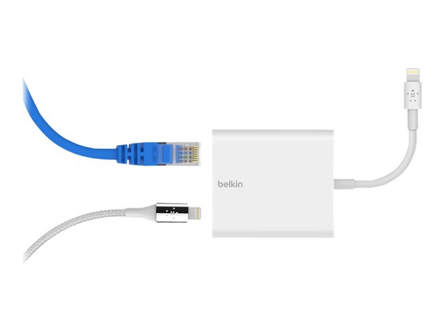 Belkin Ethernet + Power Adapter with Lightning Connector - Nätverksadapter - Lightning - 10/100 Ethernet (PoE) x 1 - vit - för Apple 10.5-inch iPad Pro; 12.9-inch iPad Pro; 9.7-inch iPad; 9.7-inch iPad Pro; iPad Air 2