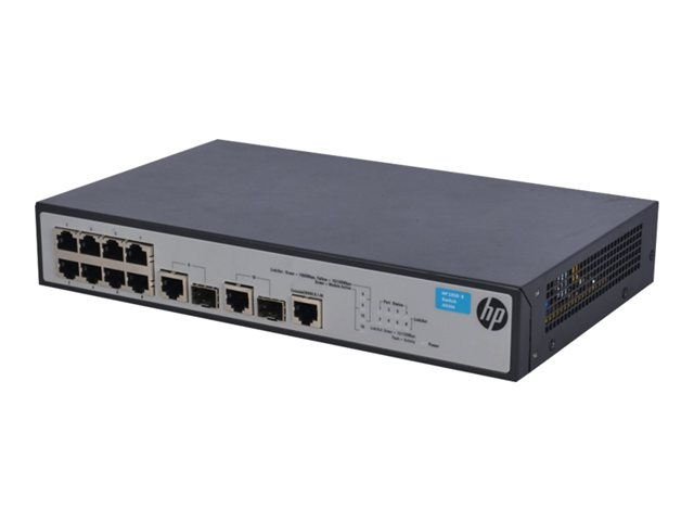 HPE 1910-8 Switch - Switch - L3 - Administrerad - 8 x 10/100 + 2 x kombinations-Gigabit SFP - rackmonterbar JG536A#ABB