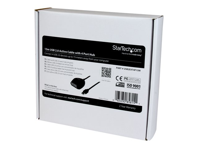 StarTech.com 15 m aktiv USB 2.0-kabel med hubb med 4 portar - Hubb - 4 x USB 2.0 - skrivbordsmodell - för P/N: SVA5H2NEUA