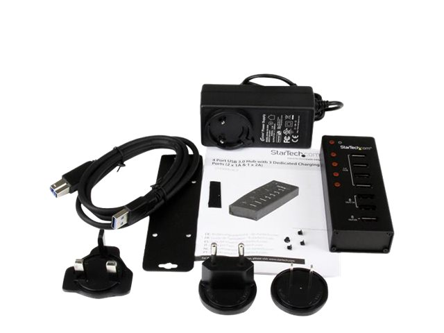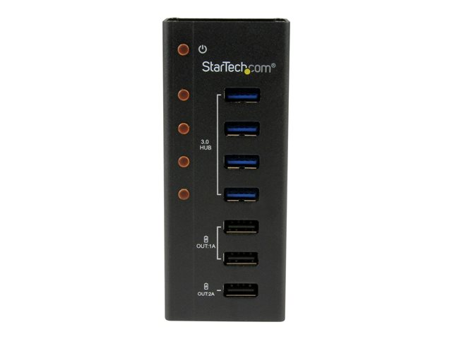 StarTech.com USB 3.0-hubb med 4 portar plus 3 dedicerade USB-laddningsportar (2x 1A & 1x 2A) – väggmonterbart metallhölje - Hubb - 4 x SuperSpeed USB 3.0 - skrivbordsmodell - för P/N: PEXUSB3S3GE, SVA12M5NA, USB312SAT3CB, USB315CB2M, USBLT1MWS, USBLTM1MBK, USBLTM1MWH