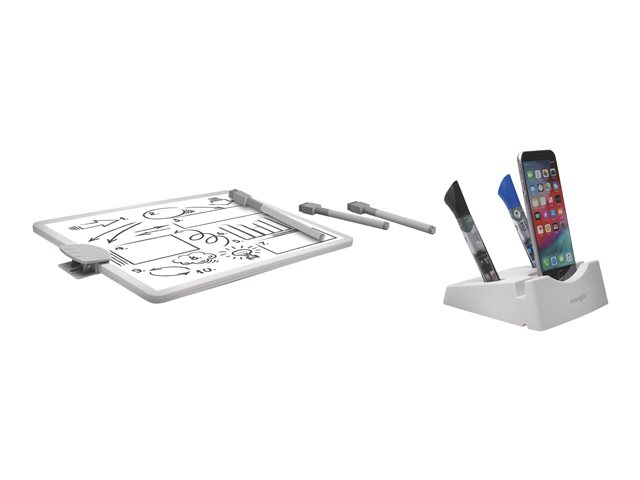 | Egenskaper | Upp till 50 ark säkerhetsklipp, stående/liggande läge, maxbelastning 3 kg, vikben, integrerad magnetisk whiteboard, smartphonehållare, integrerad kabelhantering, pennhållare, VESA-gränssnittsstöd |
