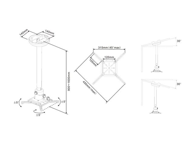 Multibrackets M Universal Projector Ceiling Mount 900-1600 with Fine tune - Monteringssats (takmontering) - för projektor - aluminium - vit - takmonterbar 7350073731787