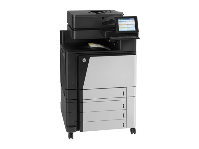 | Allmänt |  | Typ av enhet | Multifunktionsskrivare |  | Faxtyp | Vanligt papper |  | Utskriftsteknik | Laser - färg |  | Driftscykel per månad (max) | 200000 sidor |  | Rekommenderad månatlig volym | 5 000 - 25 000 sidor |  | Teckenfönstrets diagonalstorlek | 8" |  | Display-egenskaper | Pekskärm |  | Anslutningsmöjlighet | Ja |  | Gränssnitt | USB 2.0, Gigabit LAN, USB-värd, USAB-värd (intern) |  | Kontorsmaskinfunktioner | Spara till USB Flash-enhet, skanna till e-post, spara till nätverksmapp, HP EveryPage, HP High-Performance Secure Hard Disk, utdragbart tangentbord, skanna till moln, HP EasyColor, Instant-on-teknologi |  | Lokalisering | Engelska, tyska, franska, italienska, spanska / Europa |  | Minne |  | Standardminne | 1.5 GB |  | Hårddisk | 320 GB |  | Kopiering |  | Max kopieringshastighet | Upp till 46 sidor/minut (mono)/upp till 46 sidor/minut (färg) |  | Max dokumentförstoring | 400% |  | Max dokumentförminskning | 25% |  | Automatisk Duplex | Ja |  | Kopieringsfunktioner | Edge Erase |  | Utskrift |  | Max utskriftsupplösning | Upp till 1200 x 1200 dpi (mono)/upp till 1200 x 1200 dpi (färg) |  | Max utskriftshastighet | Upp till 46 sidor/minut (mono)/upp till 46 sidor/minut (färg) |  | Skrivardrivrutiner/emuleringar | PCL 5e, PCL 6, PostScript 3, PDF 1.4 |  | Bildförbättringsteknik | HP FastRes 1200, HP ImageREt 4800, HP ProRes 1200 |  | Automatisk duplex | Ja |  | Tid för första utskrift i svartvitt | 11 sek |  | Skanning |  | Automatisk duplex | Ja |  | Optisk upplösning | 600 dpi |  | Faxapparat |  | Max överföringshastighet | 33.6 Kbps |  | Faxupplösningar | 300 x 300 dpi, 200 x 100 dpi |  | Faxfunktioner |  | Snabbnummer | 100 station(er) |  | Sändning | 100 stationer |  | Funktioner | Vidarebefordring av fax, automatisk återuppringning, autoreducering, faxpolling |  | Dokument- och mediehantering |  | Maximal originalstorlek | A3 (297 x 420 mm), Ledger (279 x 432 mm) |  | Originaltyp | Ark |  | Dokumentmatarens kapacitet | 200 ark |  | Min. mediestorlek | 76 x 127 mm |  | Max. mediestorlek | A3/Ledger |  | Min. medievikt | 60 g/m² |  | Max. medievikt | 220 g/m² |  | Medietyper som stöds | OH-film, vanligt papper, etiketter, returpapper, bond paper, kortlager |  | Mediestorlekar som stöds | ANSI A (Letter) (216 x 279 mm), Legal (216 x 356 mm), Executive (184 x 267 mm), A4 (210 x 297 mm), A5 (148 x 210 mm), A3 (297 x 420 mm), A6 (105 x 148 mm), ARCH B (304.8 x 457.2 mm), JIS B5 (182 x 257 mm), JIS B4 (257 x 364 mm), SRA3 (320 x 450 mm), SRA4 (225 x 320 mm), 101.6 x 152.4 mm, Statement (139.7 x 215.9 mm), 197 x 273 mm, 76.2 x 127 mm, RA3 (305 x 430 mm), 127 x 177.8 mm, 279.4 x 431.8 mm, 215.9 x 330.2 mm, 127 x 203.2 mm, JIS B6 (128 x 182 mm), RA4 (215 x 305 mm), 270 x 390 mm, 260 x 368 mm, 273 x 394 mm, 195 x 270 mm, 184 x 260 mm |  | Kuvertstorlekar som stöds | US No 10 (104.7 x 241.3 mm), International DL (110 x 220 mm), International C6 (114 x 162 mm), International C5 (162 x 229 mm), International B5 (176 x 250 mm), Monarch (98.4 x 190.5 mm), US No 9 (98.6 x 225.6 mm) |  | Standard mediekapacitet | 2100 ark |  | Kapacitet hos förbikopplande dokumentmatare | 100 ark |  | Utmatningsfackens kapacitet | 500 ark |  | Dokument- och mediehantering, specifikationer | ADM - 200 ark - A3/Ledger (297 x 432 mm) vikt: 45 g/m² - 199 g/m² Inmatningsfack - 100 ark storlek: 76 x 127 mm - 320 x 470 mm vikt: 60 g/m² - 220 g/m²