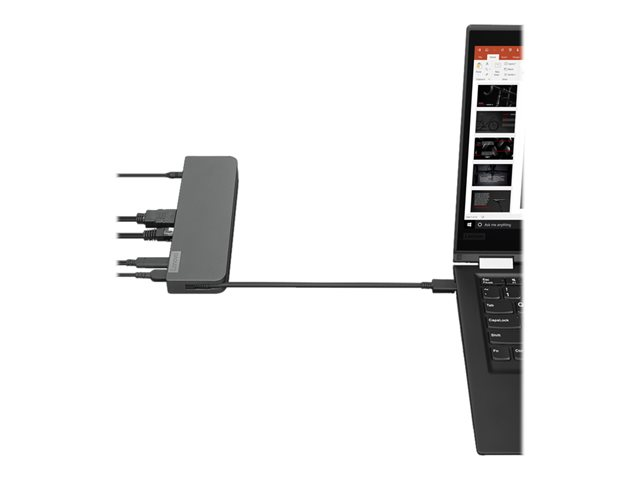 Stärk din potential med en universell mini-dockningsstation Lenovo är medvetna om att moderna företag är beroende av datorer av många olika typer och till och med varumärken för att tillgodose sina verksamhetsbehov. Därför är Lenovo USB-C Mini Dock kompatibel med bärbara datorer såväl från Lenovo som från HP och Dell.