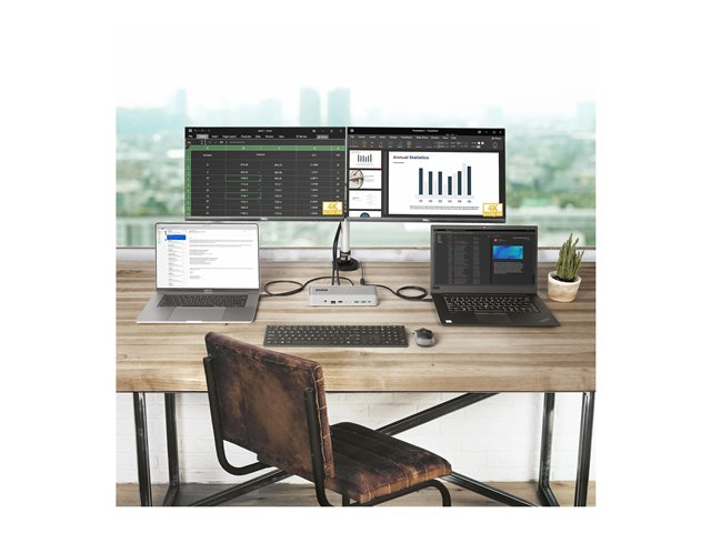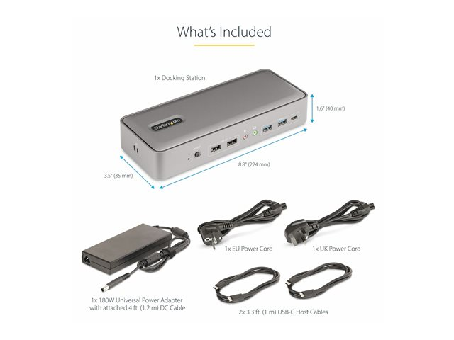 | Standarder som följs | DisplayPort 1.4, USB Power Delivery 3.0, UASP (USB Attached SCSI Protocol), RoHS, WEEE, DisplayLink-certifierad |