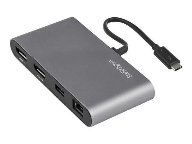 StarTech.com Thunderbolt 3 Mini Dock - Portable Dual Monitor w/ DP 4K 60Hz - 2X USB-A Hub (3.2/2.0), GbE - 28cm Cable - TB3 Multiport Adapter - Mac/Windows - Upgraded Version of TB3DKM2DP (TB3DKMDPL) - Dockningsstation - Thunderbolt 3 - 2 x DP - 1GbE