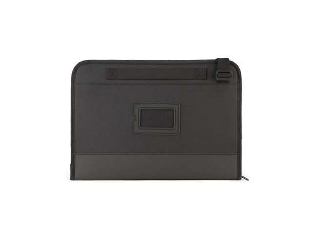 | Allmänt |  | Produkttyp | Notebook-väska |  | Bredd | 34.8 cm |  | Djup | 2.3 cm |  | Höjd | 23.9 cm |  | Notebook-kompatibilitet | 14" |  | Ytterligare utrymmen | ID-märke |  | Egenskaper | Skraptorr, rivsäker, slitstrak, vadderad utsida |  | Bärrem | Justerbar axelrem, bärhandtag |  | Färg | Svart |  | Diverse |  | Standarder som följs | RoHS, CPSIA |  |