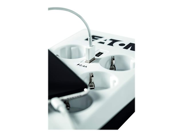 Eaton Protection Box 6 USB DIN - Överspänningsskydd - Växelström 220-250 V - 2500 Watt - utgångskontakter: 6 - vit